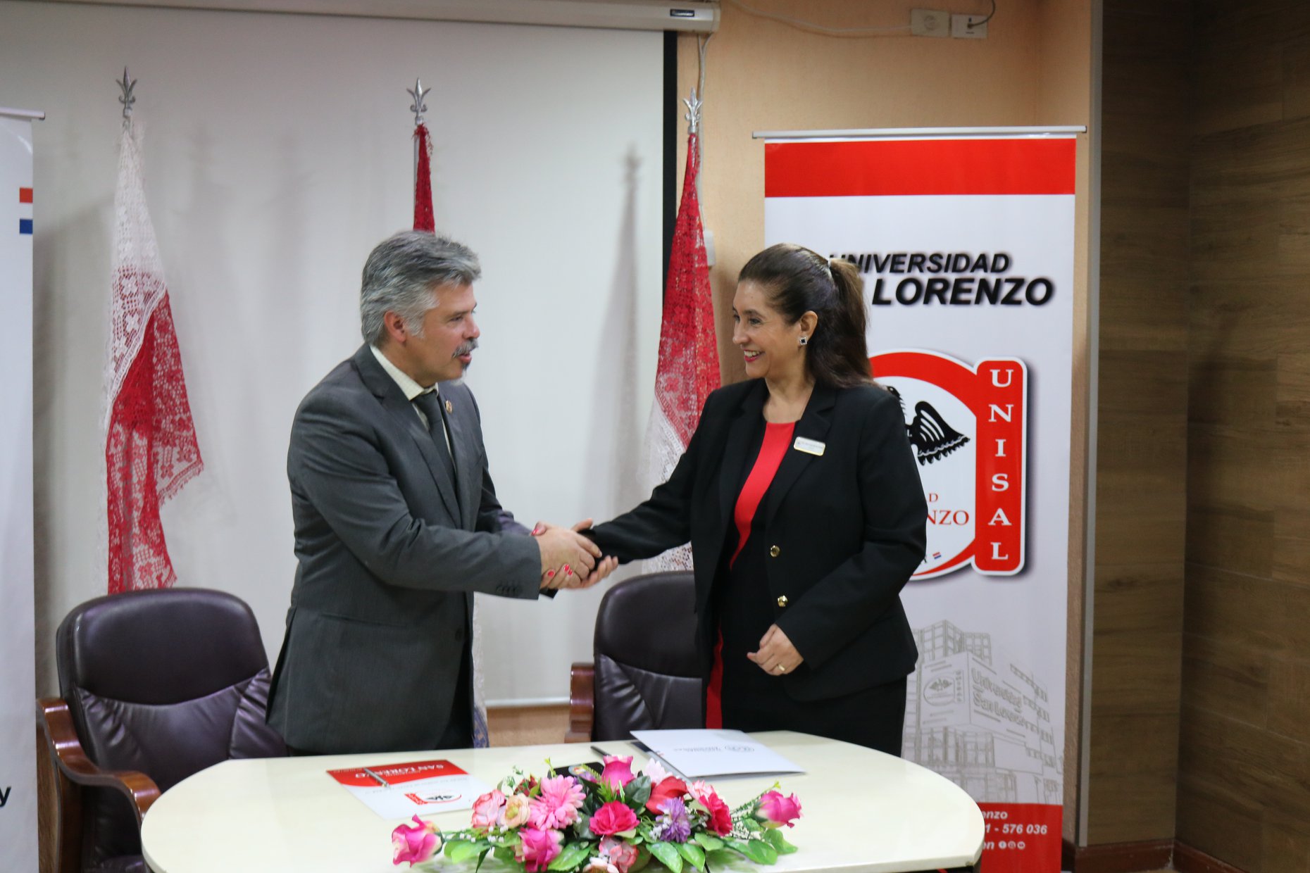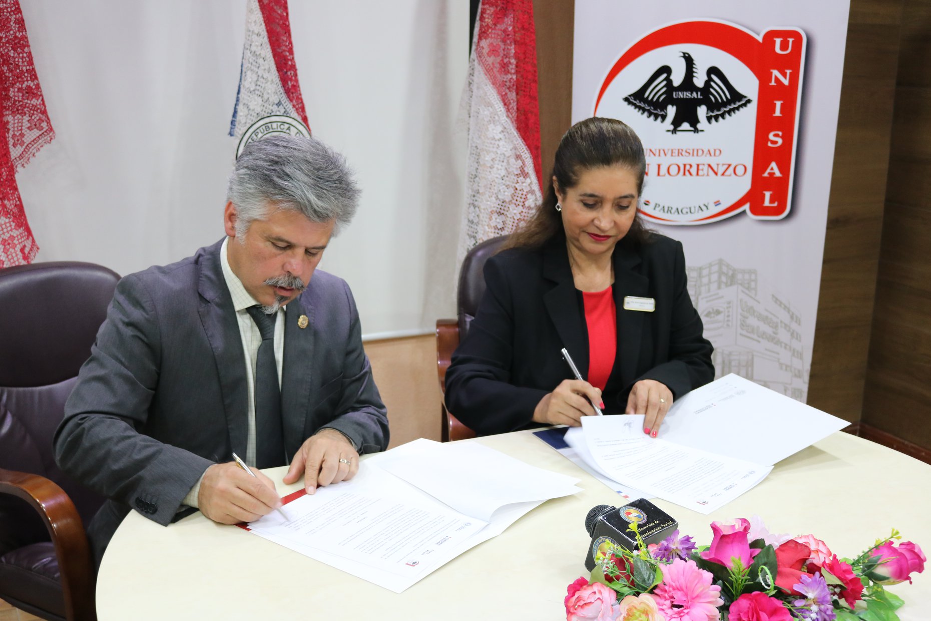 Alianza estratégica entre la Universidad San Lorenzo Unisal y la Secretaría Nacional Antidrogas – SENAD, la mañana del jueves 08/08/2019 procedieron a la firma del documento oficial, la Dra. Elva Cogorno de Verón en representación de la UNISAL y el Dr. Arnaldo Giuzzio, Ministro de la SENAD.