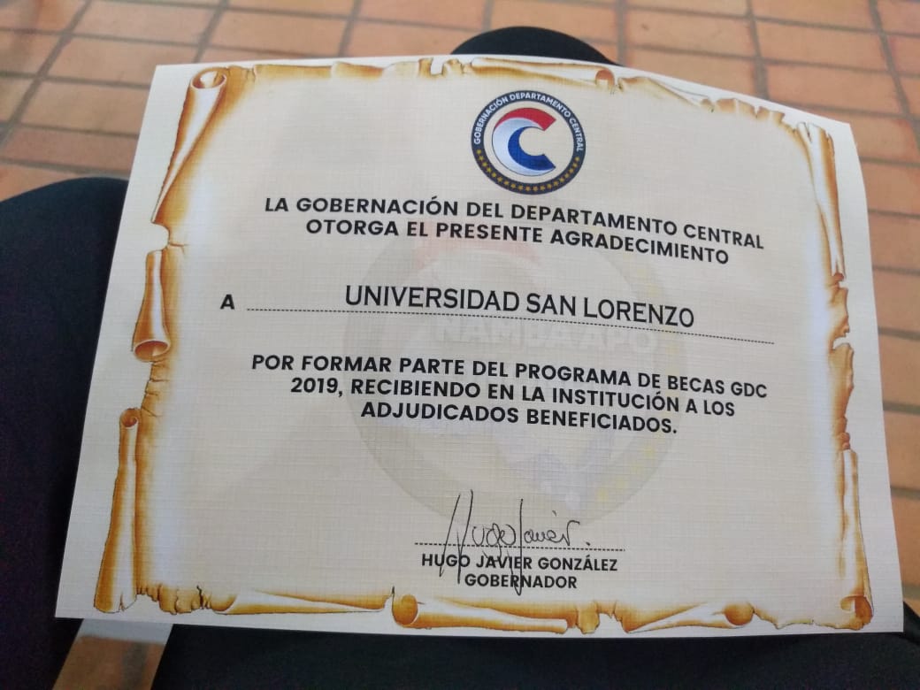Entrega oficial de becas de la Gobernación a las Universidades 22May, 2019 Share Entrega oficial de becas de la Gobernación a las Universidades. La UNISAL conforma parte del programa de Becas otorgadas por Gobernación del Departamento Central 2019 #SomosUNISAL #12AñosUNISAL Previous Firma de convenio entre la Universidad San Lorenzo (UNISAL) y la Universidad Técnica del Norte (UTN) abril 3, 2019 Next Consultorio Nutricional julio 16, 2019