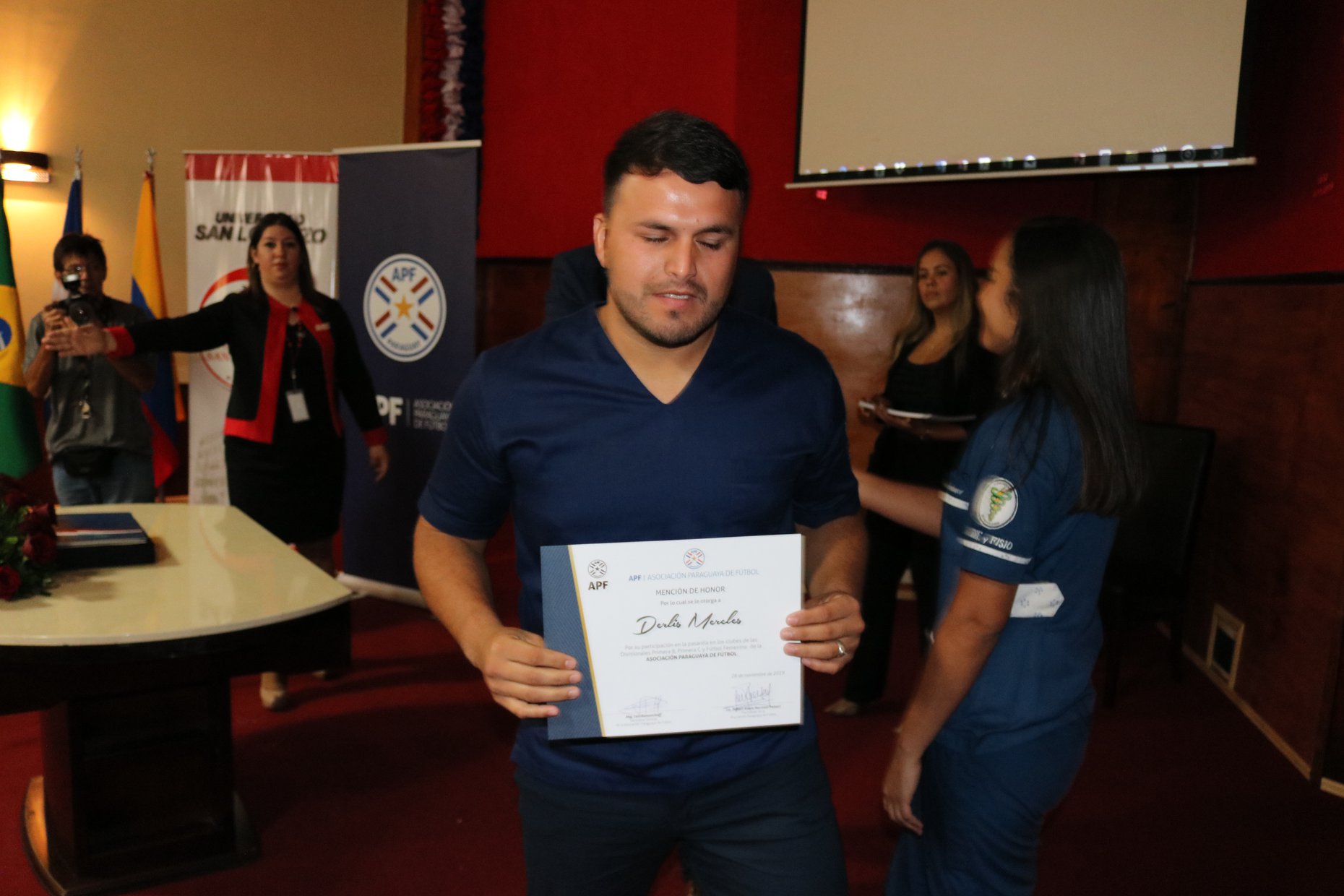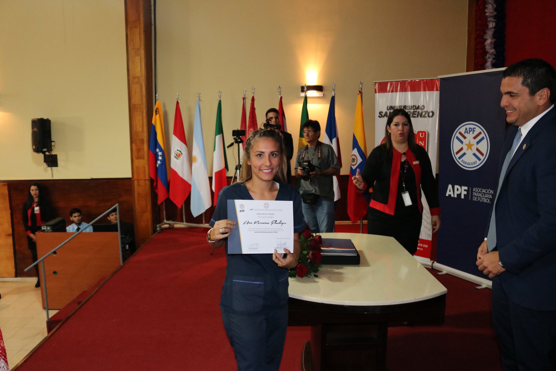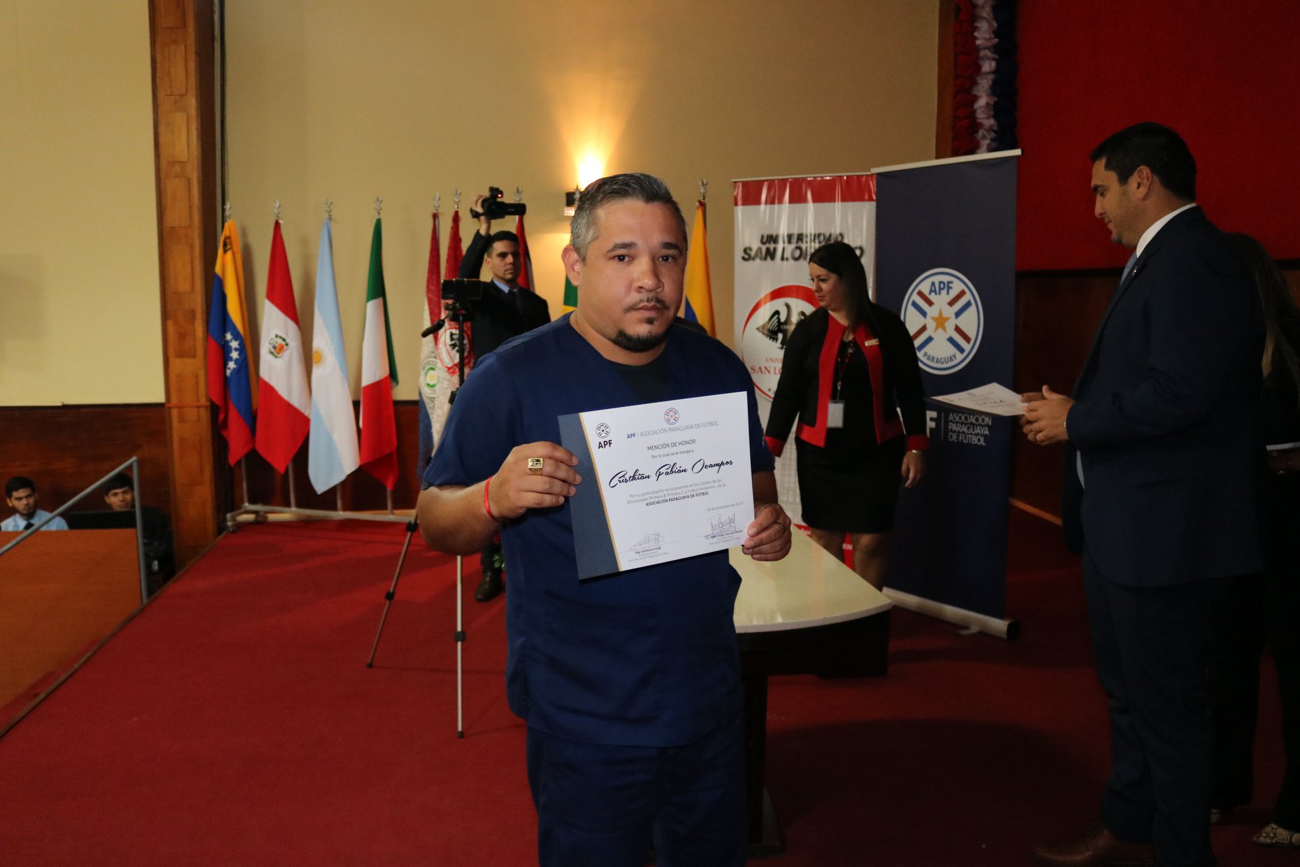 Asimismo durante la visita la UNISAL distingue al Presidente de la APF Lic. Robert Alexis Harrison Paleari como Embajador de la Universidad San Lorenzo Unisal